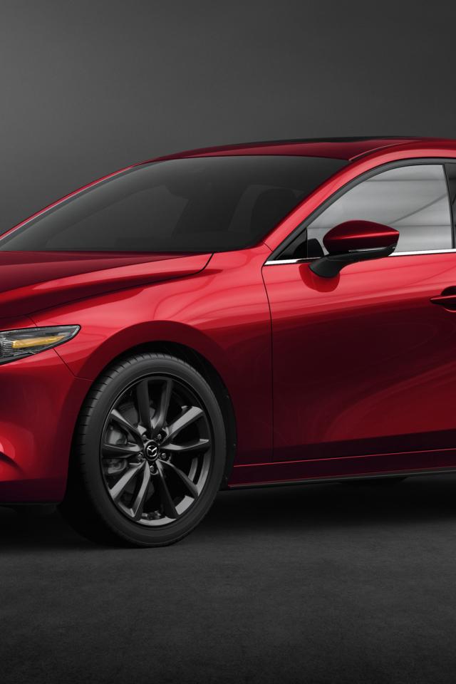 Wallpaper Red car Mazda 3, 2020 year on a gray background