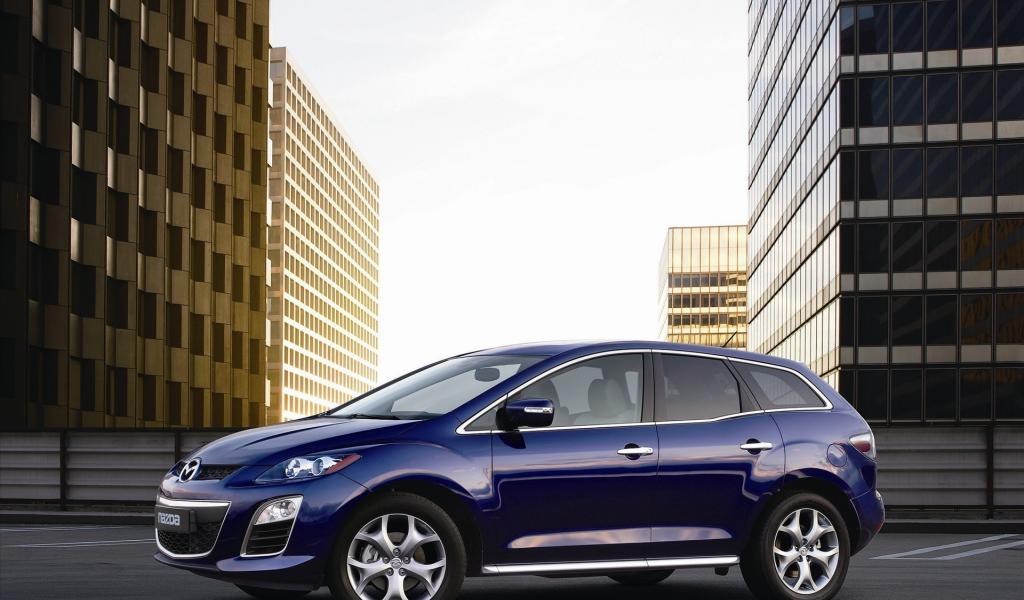Wallpaper Family car Mazda against the city buildings