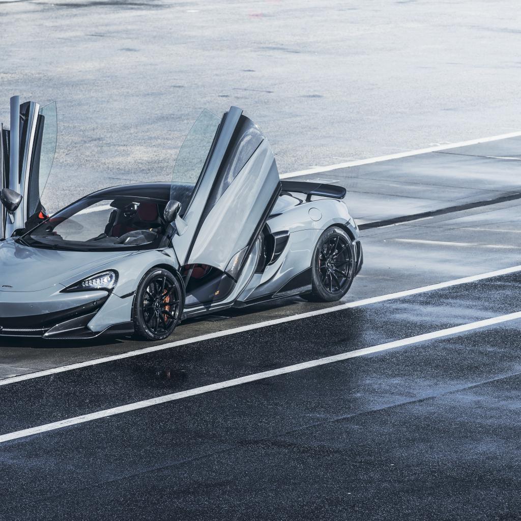 Wallpaper Silver car McLaren 600LT, 2019 with open doors