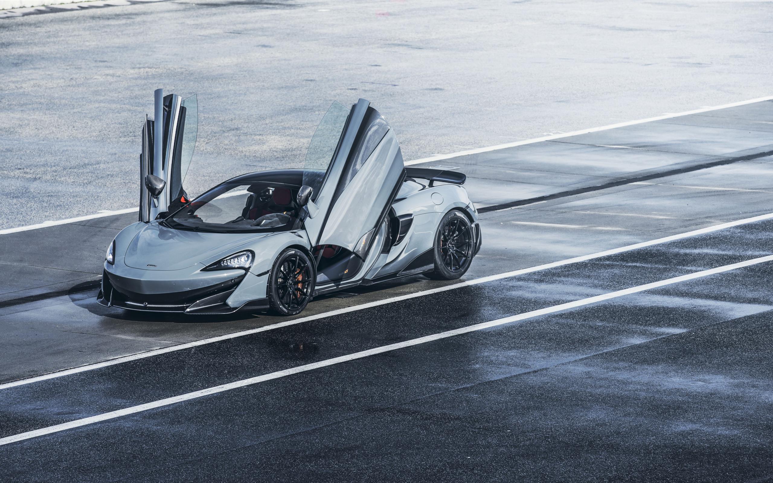 Wallpaper Silver car McLaren 600LT, 2019 with open doors