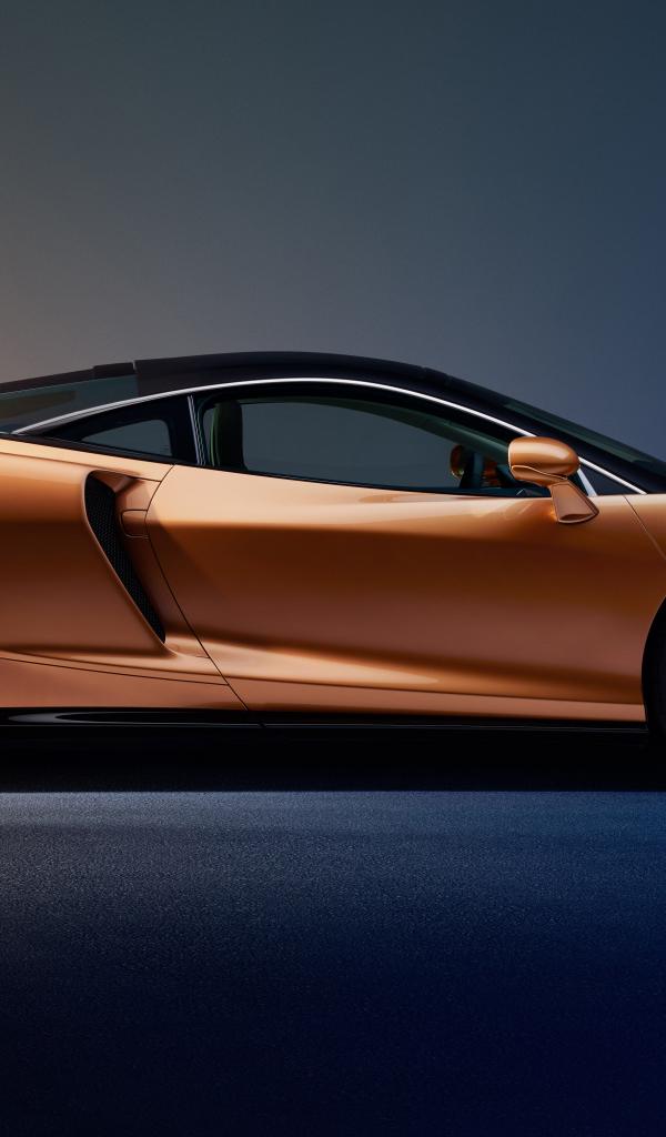 Wallpaper Orange 2019 McLaren GT Superlight on a blue background