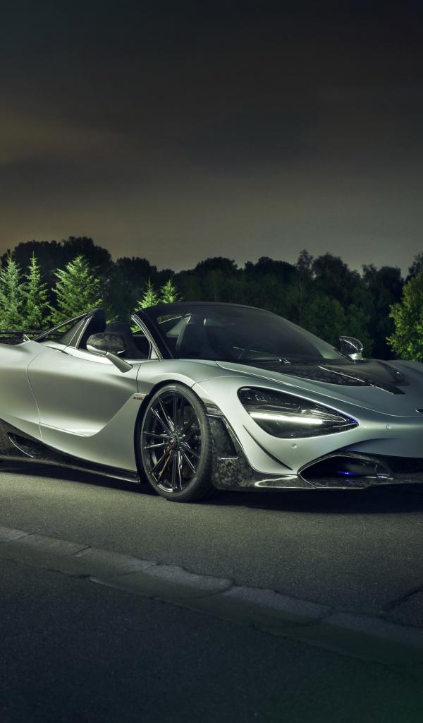 Wallpaper Silver McLaren 720S Spider 2019 car at night on the road