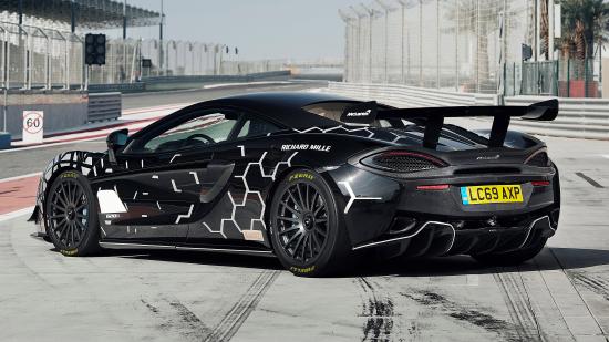 Wallpaper Black sports car McLaren 620R on the circuit