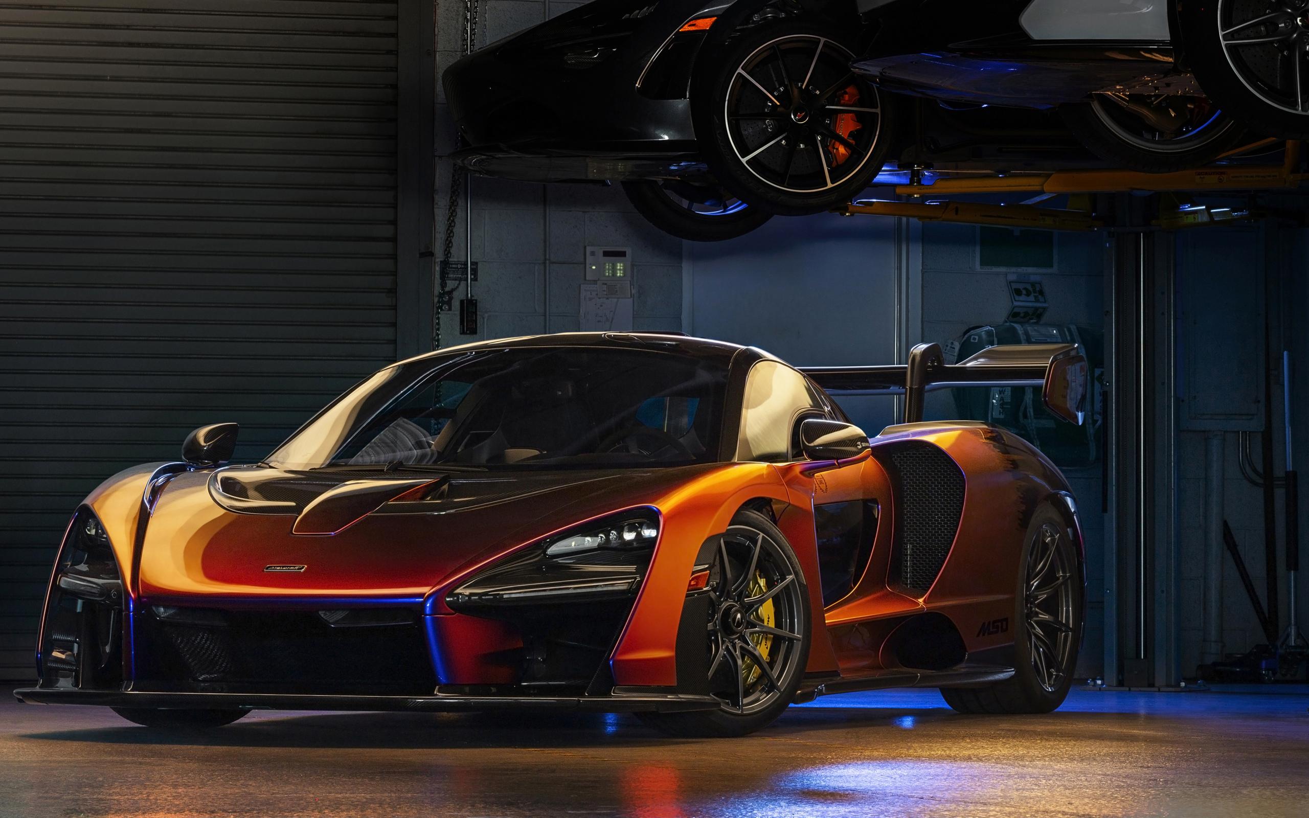 Wallpaper McLaren MSO Senna orange sports car in the garage