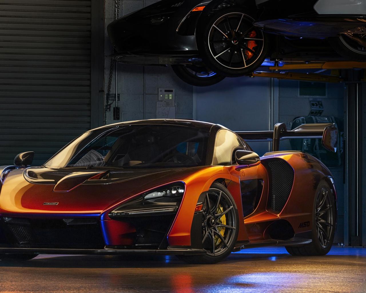 Wallpaper McLaren MSO Senna orange sports car in the garage