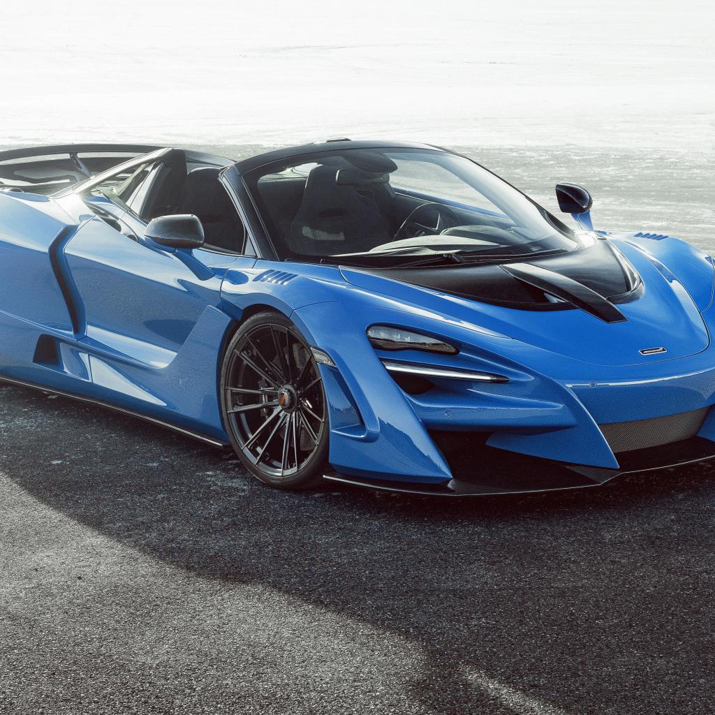 Wallpaper Blue car McLaren 720S, 2020 on the pavement