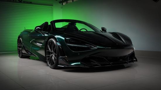 Wallpaper McLaren 720S black sports car in the garage in 2020