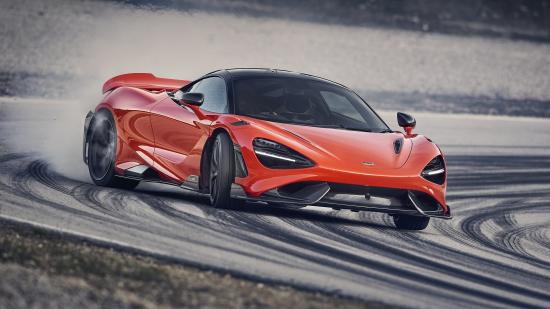 Wallpaper Red 2020 McLaren 765LT race car on track