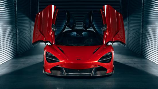 Wallpaper Red McLaren 720S car with open doors in the garage