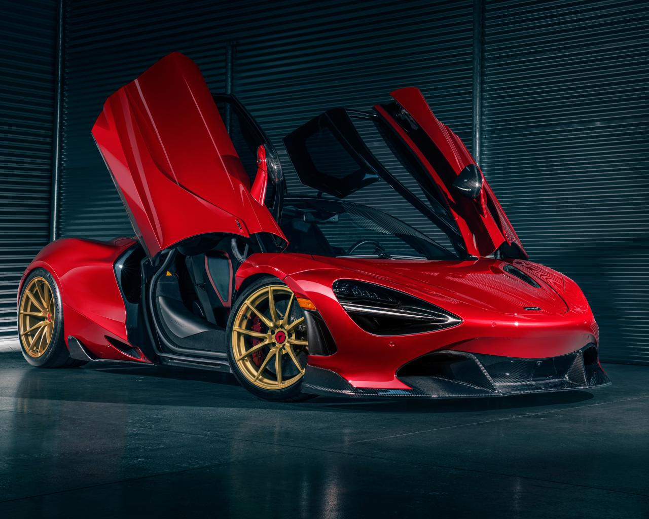Wallpaper McLaren 720S car against a gray wall