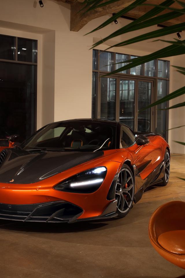 Wallpaper Orange McLaren 720S car at home with armchair