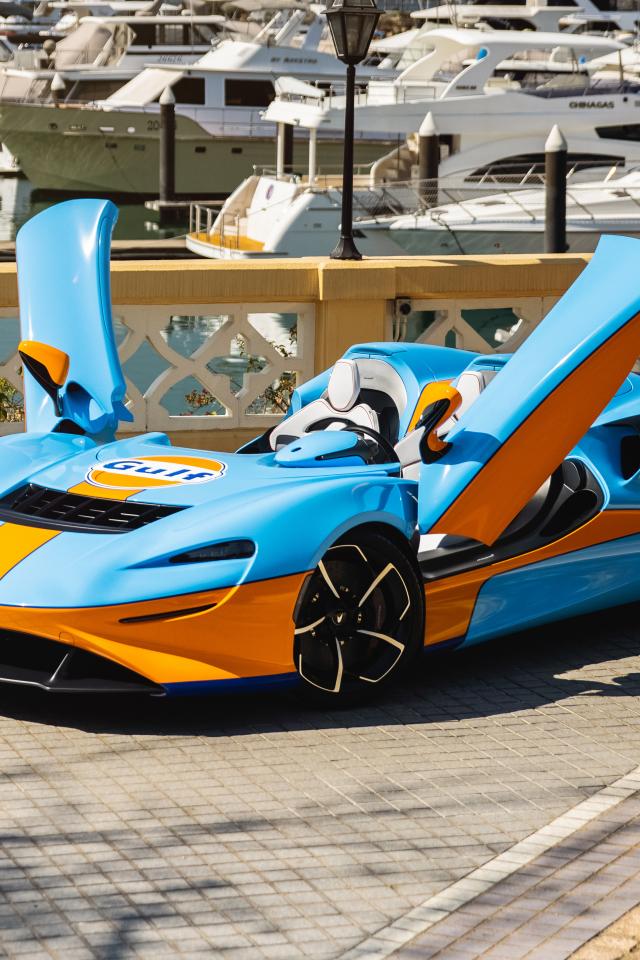 Wallpaper 2021 McLaren Elva Gulf Theme sports car with open doors