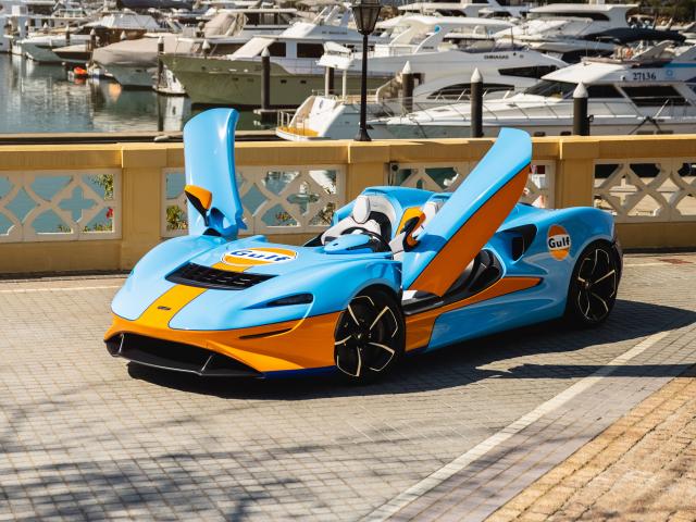 Wallpaper 2021 McLaren Elva Gulf Theme sports car with open doors