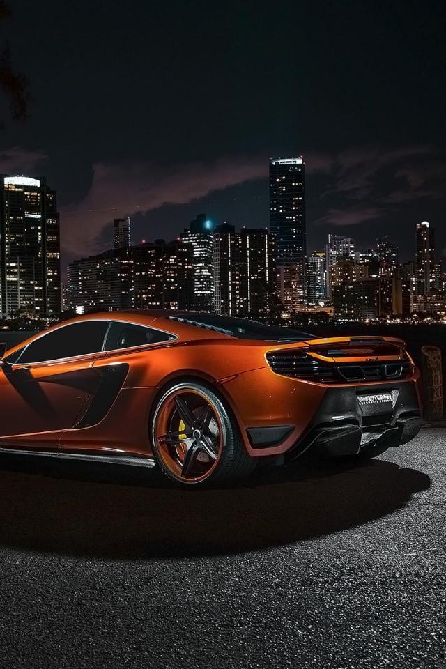 Wallpaper Orange McLaren MP4-12C against the backdrop of the city at night