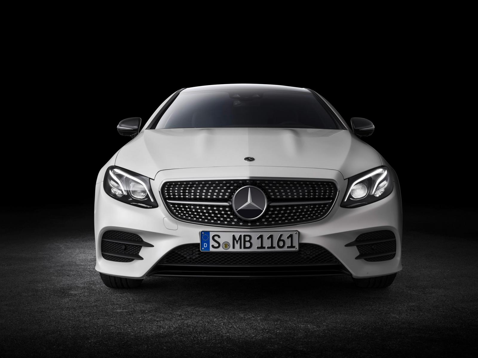 Wallpaper White car Mercedes-Benz E-Class Coupe, 2018 front view