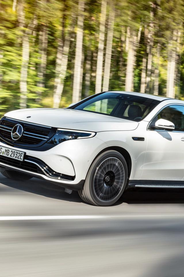 Wallpaper White SUV Mercedes-Benz EQC, 2020 on the track