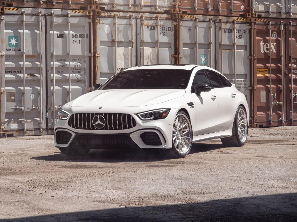 Wallpaper White car Mercedes-AMG GT 63 S stands at containers