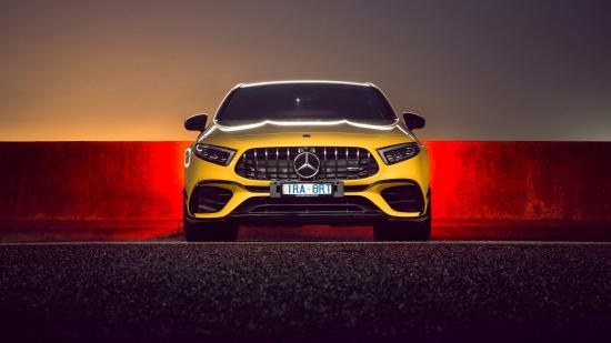 Wallpaper Yellow car Mercedes-AMG A 45 S, 2020 front view