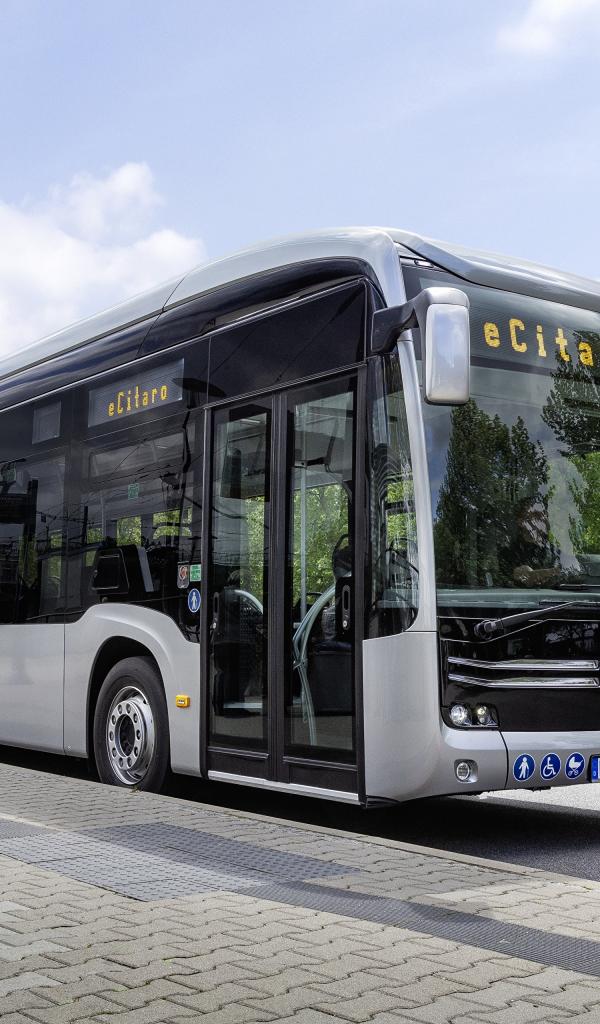 Wallpaper Mercedes-Benz bus at the bus stop