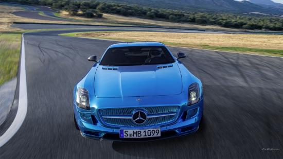 Wallpaper Blue Mercedes SLS on the racetrack