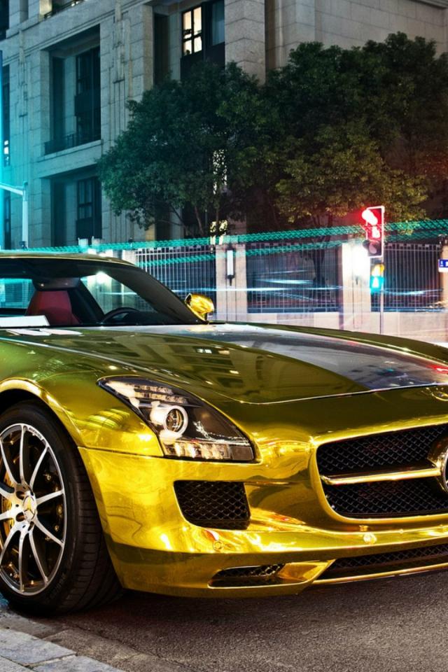 Wallpaper Gold Mercedes-Benz SLS AMG