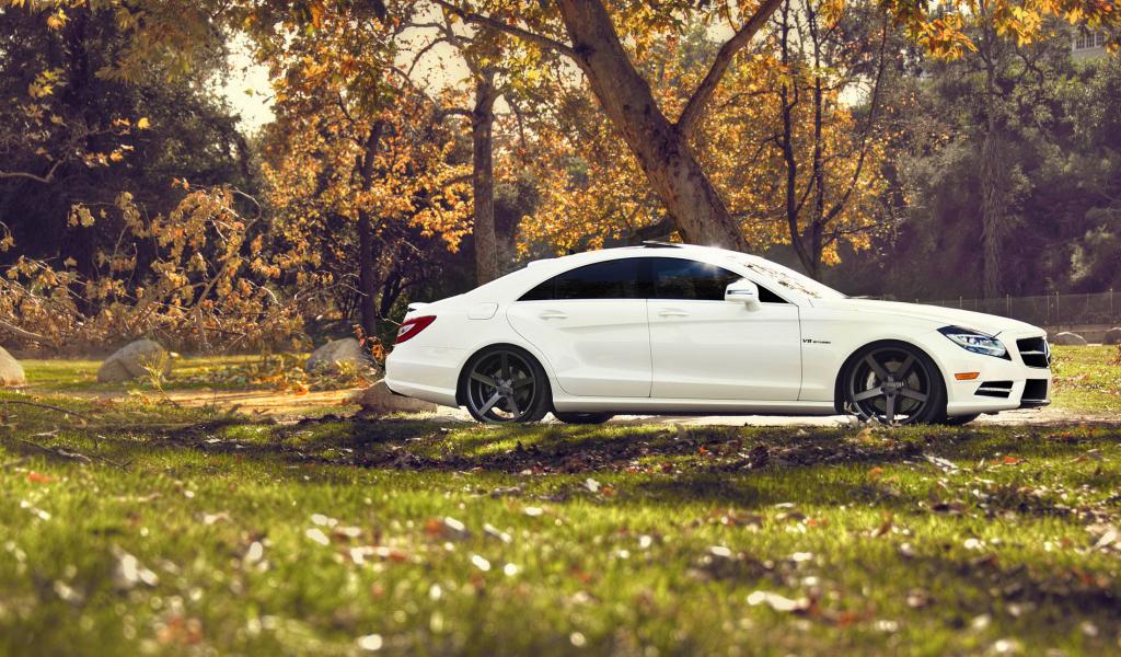 Wallpaper White Mercedes in nature