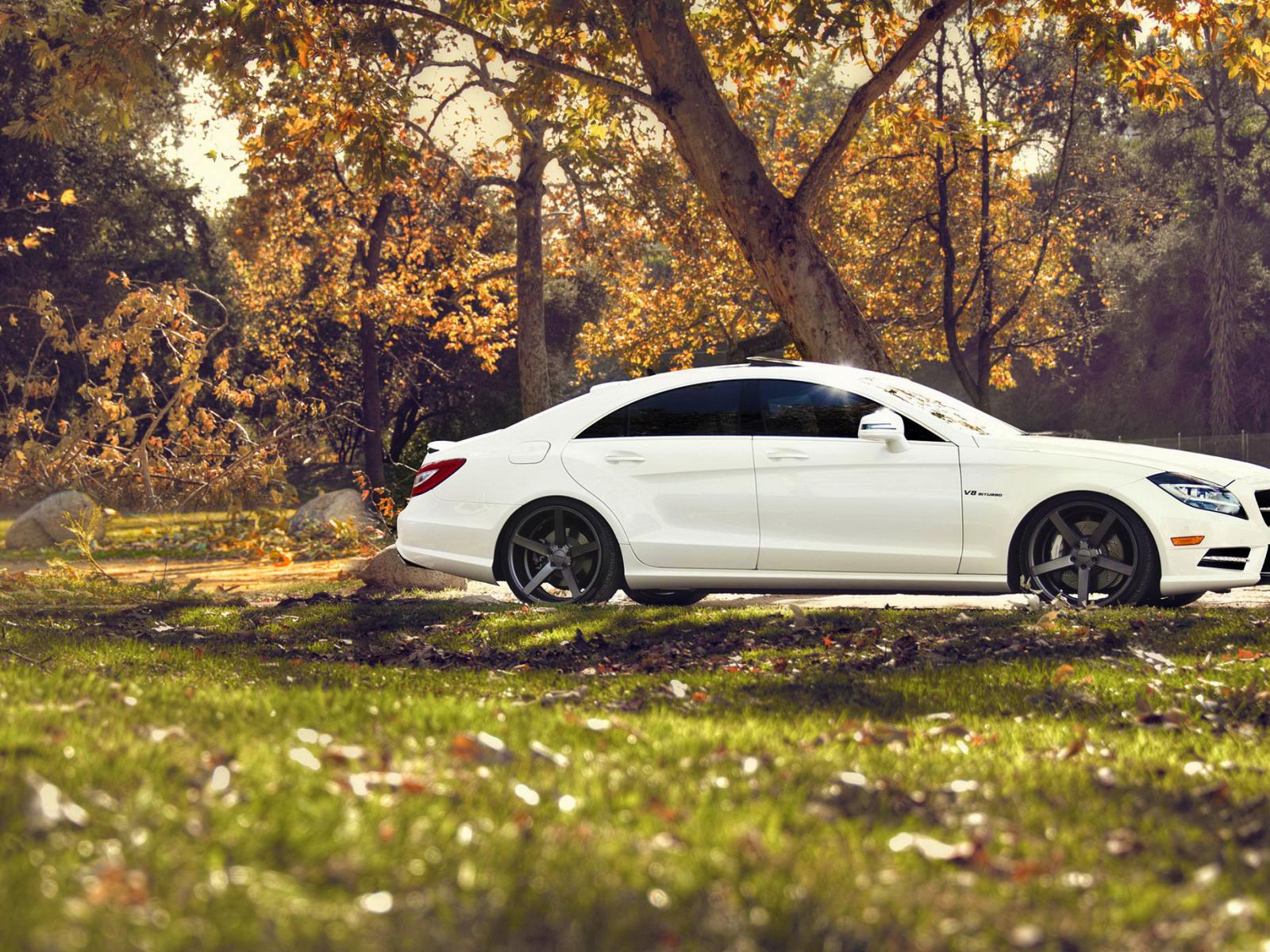 Wallpaper White Mercedes in nature