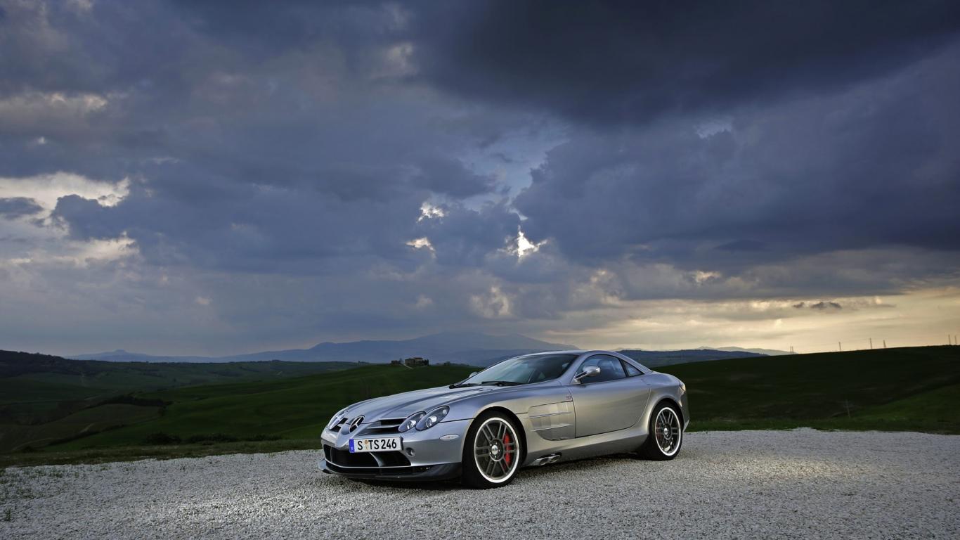 Wallpaper Sporting a silver Mercedes