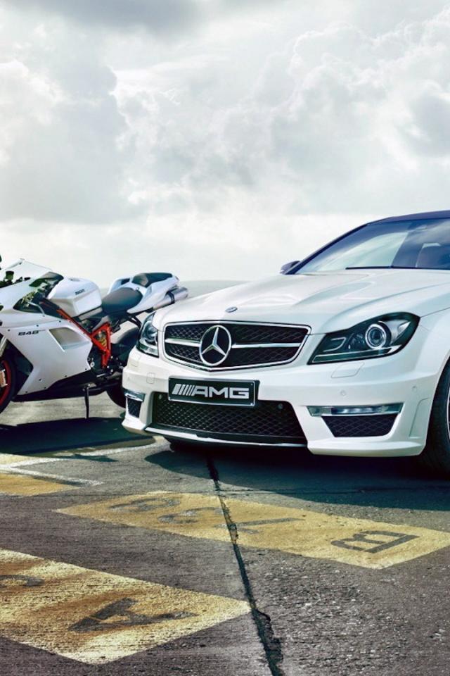 Wallpaper Motorcycle Ducati 848 and Mercedes C63 AMG