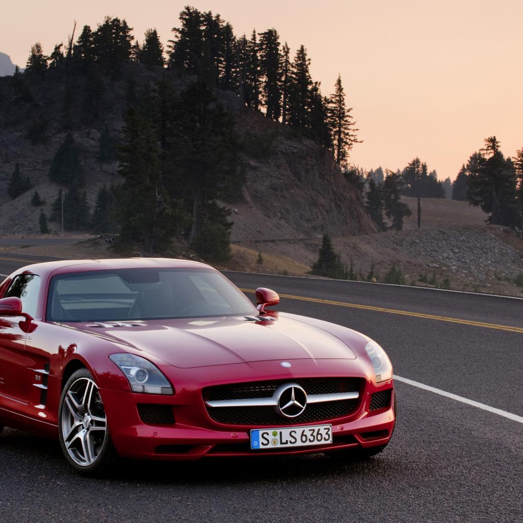 Wallpaper Mercedes Benz SLS AMG red