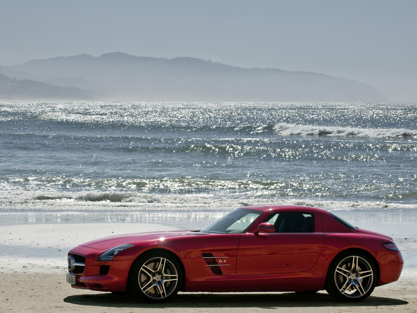 Wallpaper Red Mercedes on the beach