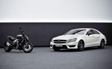 Wallpaper Motorcycle Ducati 848 and Mercedes C63 AMG