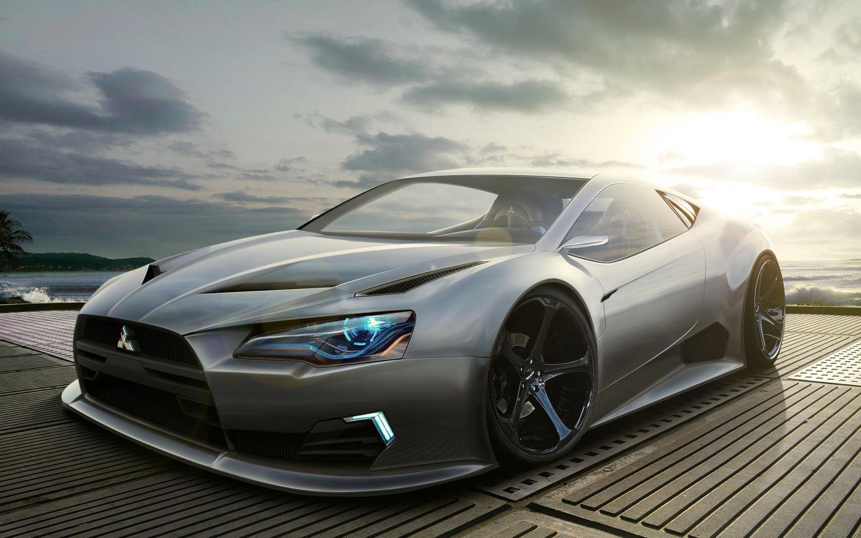 Wallpaper Silver Mitsubishi car in the sun