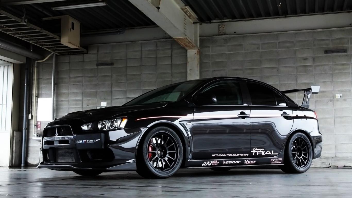 Wallpaper Black Mitsubishi Lancer Evo X in the garage