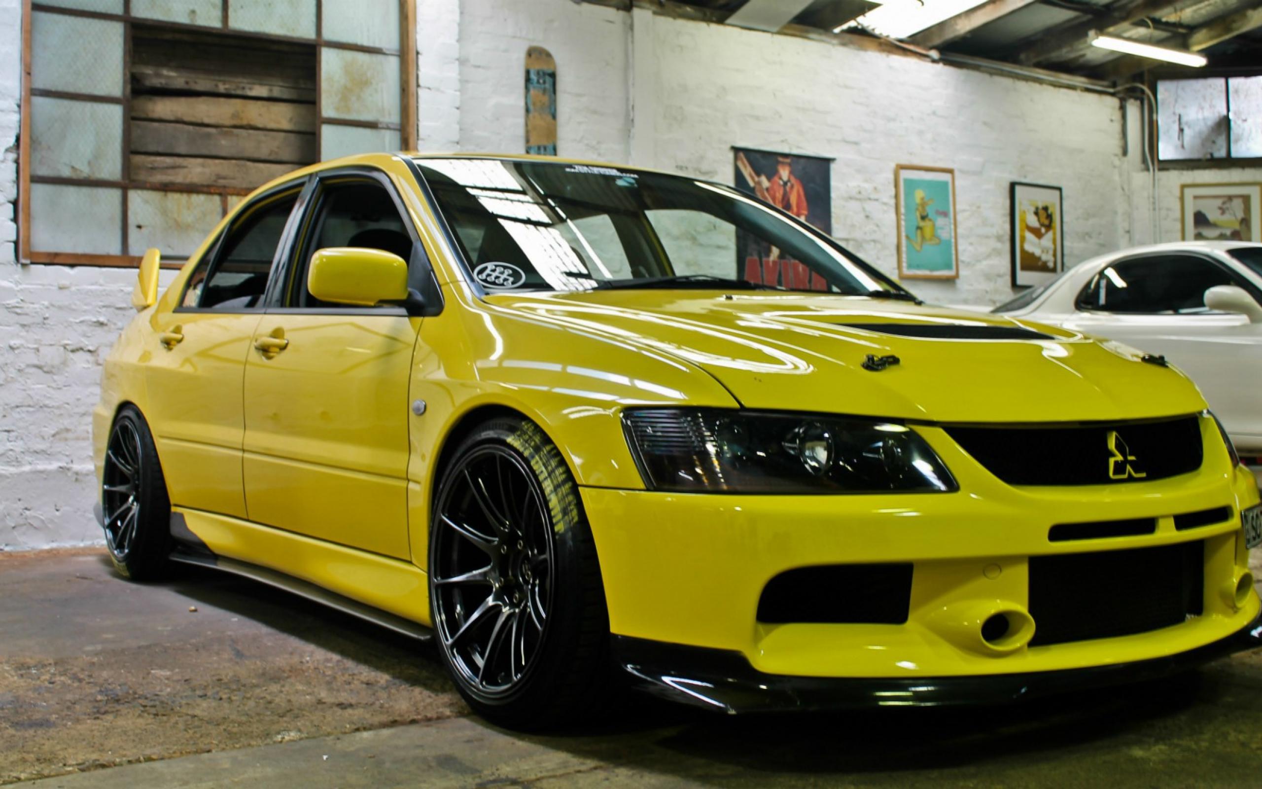 Wallpaper Yellow Mitsubishi Lancer Evolution