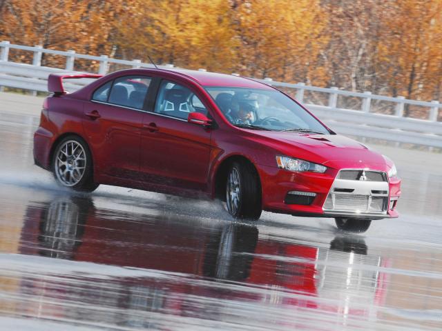 Wallpaper Mitsubishi on wet roads