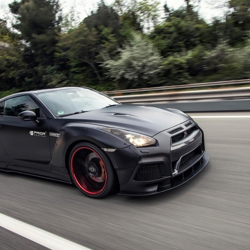 Wallpaper Black Nissan GT-R PD750 Widebody racing down the highway