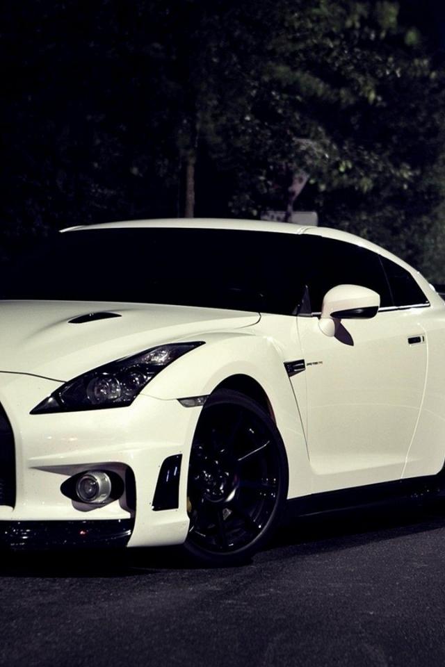 Wallpaper White sports car Nissan Skyline GT-R R35 on the track