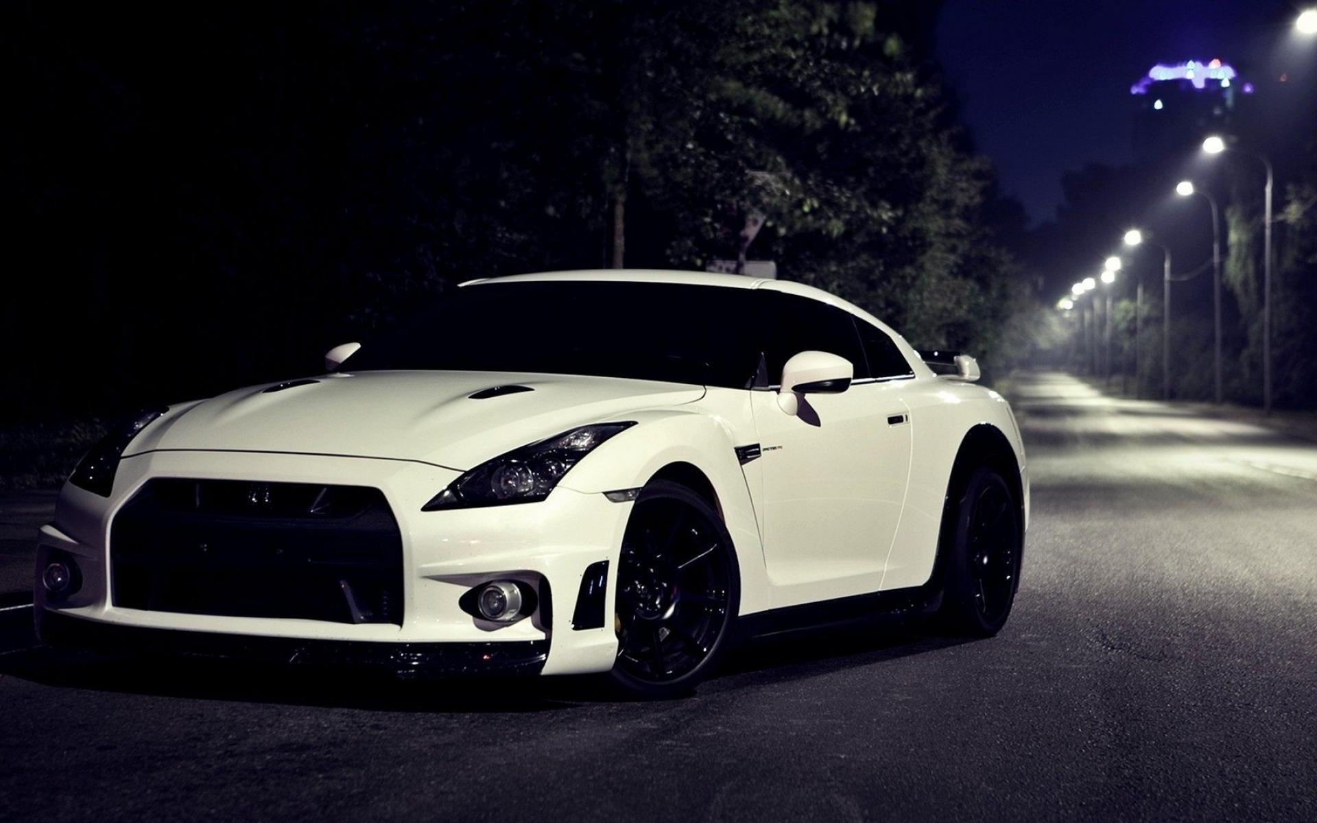 Wallpaper White sports car Nissan Skyline GT-R R35 on the track