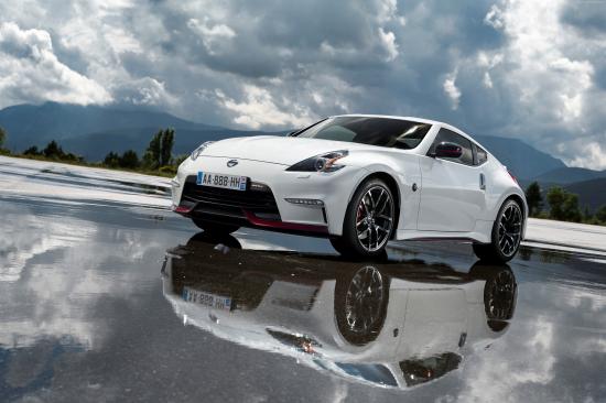 Wallpaper White car Nissan 370z Nismo, 2018 on a cloudy sky background