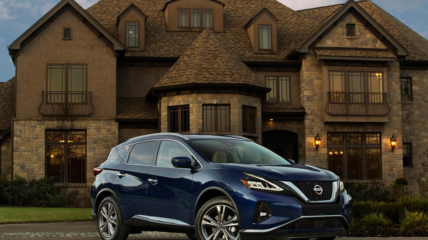 Wallpaper Blue car Nissan Murano on the background of the mansion