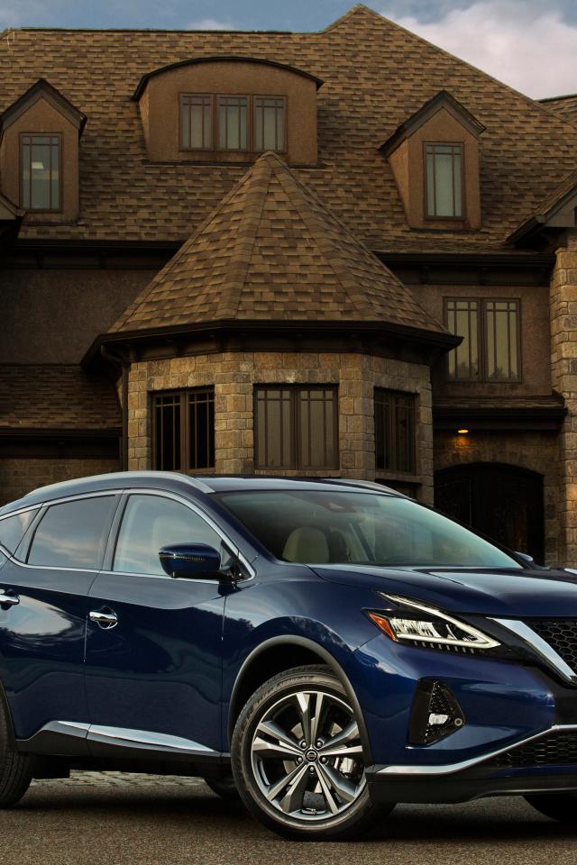Wallpaper Blue car Nissan Murano on the background of the mansion