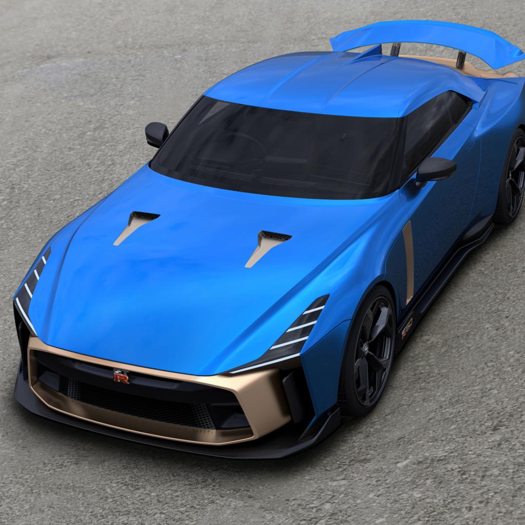 Wallpaper Blue 2019 Nissan GT-R50 car on gray asphalt