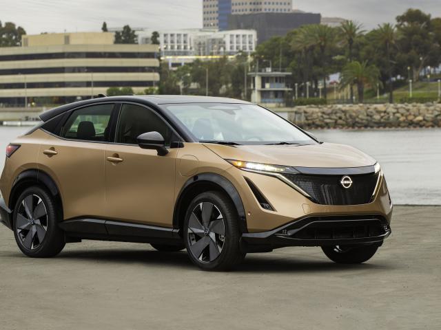 Wallpaper Brown car Nissan Ariya SL E-4orce, 2021 by the water