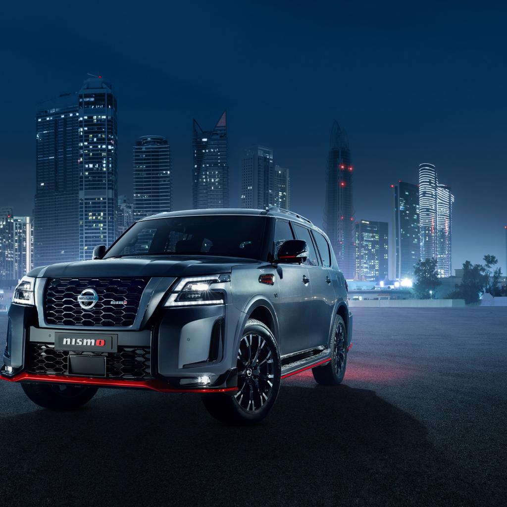 Wallpaper 2021 Nissan Patrol Nismo car against the backdrop of the city