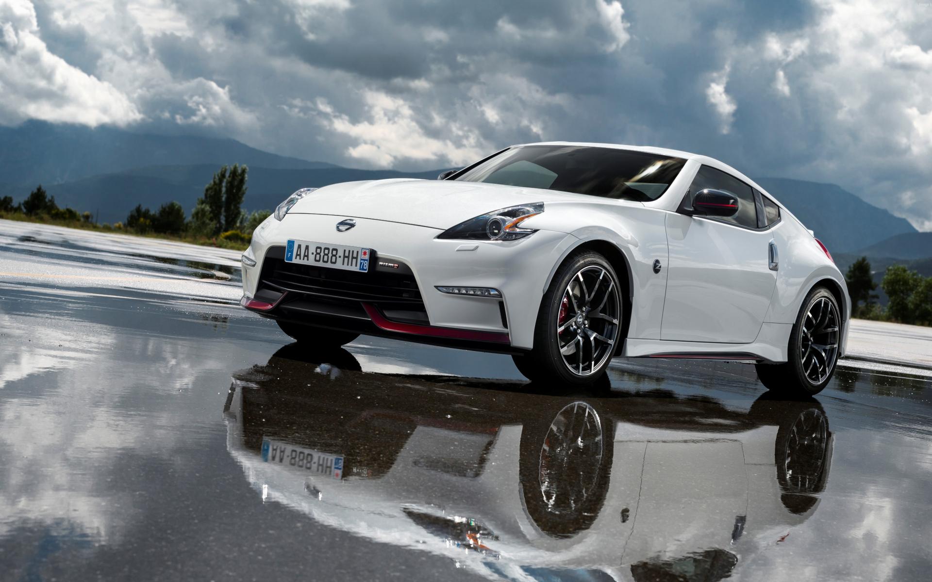 Wallpaper White Nissan sports car on the asphalt