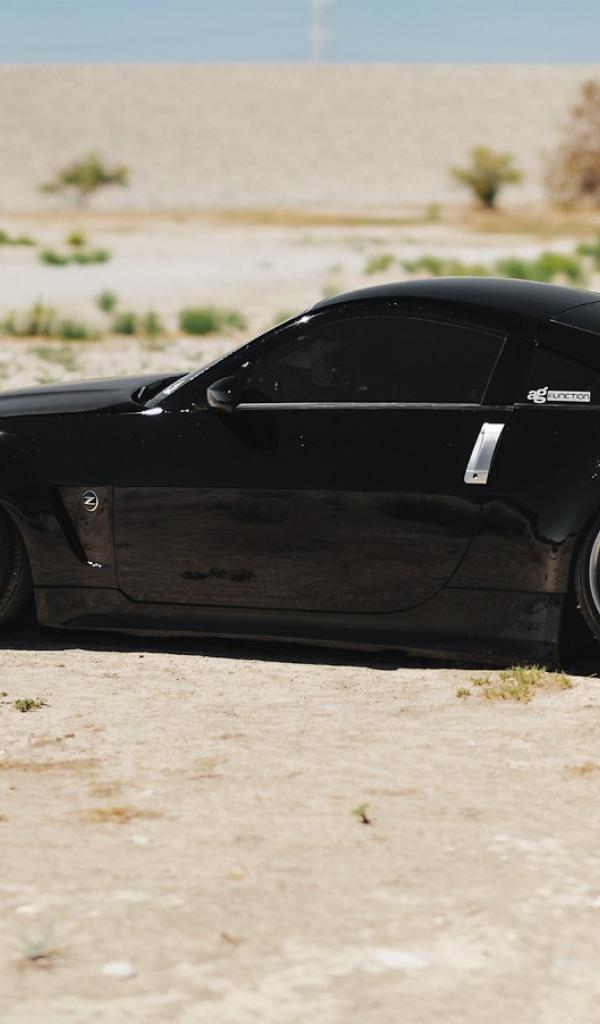Wallpaper Black Nissan 350Z on the white sand