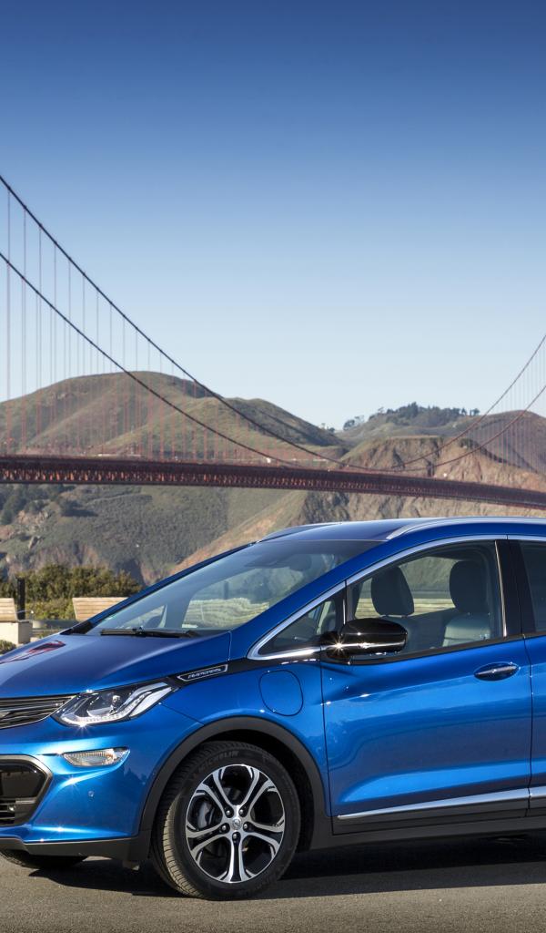 Wallpaper Blue Opel Ampera-e, 2017 against the backdrop of the bridge