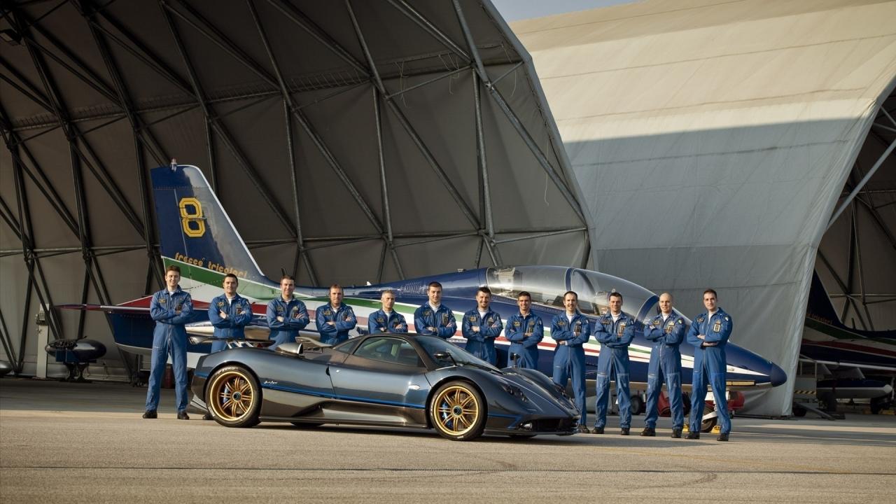 Wallpaper Team pilots with aircraft and cars Pagani Zonda Tricolore