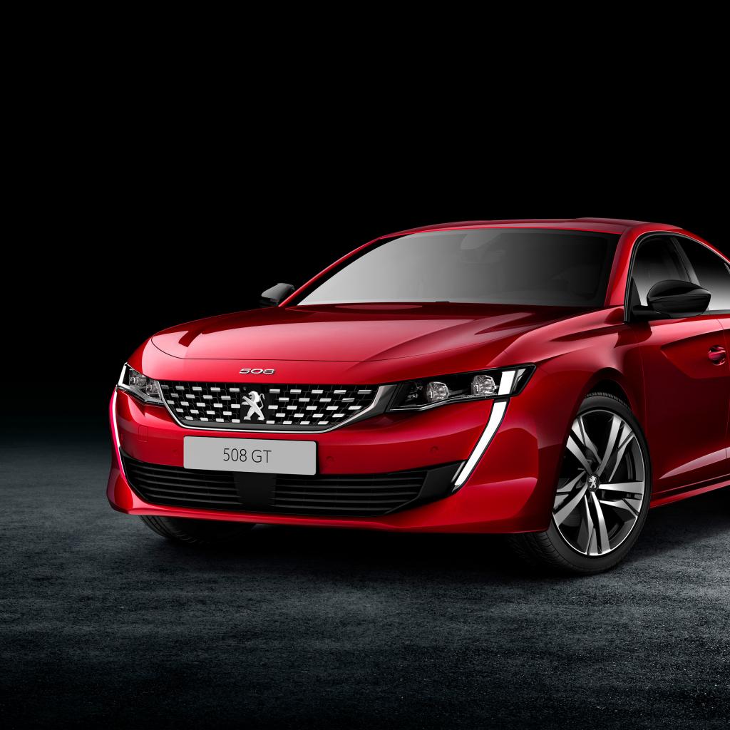 Wallpaper Red stylish Peugeot 508 GT car on a black background